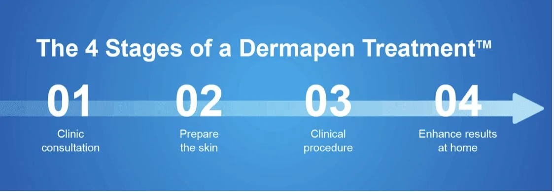 After conducting your consultation your skin will be cleansed and photographs will be taken to allow us to privately document your progress. During the Dermapen treatment we infuse a professional Hyaluronic Acid serum to ensure your skin not only benefits from the Collagen Induction Therapy, but is plump and hydrated. After needling is completed a professional fleece mask infused with Copper and Hyaluronic Acid is applied to super hydrate, calm and nourish your skin. Generally you are free to continue your day as per usual as a medical grade foundation/spf may be applied to your skin, keeping in mind the list of activities stated in post treatment info to avoid for a few days.