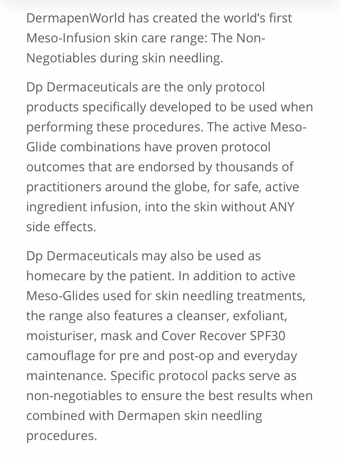 Dermaceuticals Skin Care used during treatment is also recommended importantly pre & post-treatment and for everyday home-care to support the skin ultimate results. It is specifically designed to support and enhance skin needling.